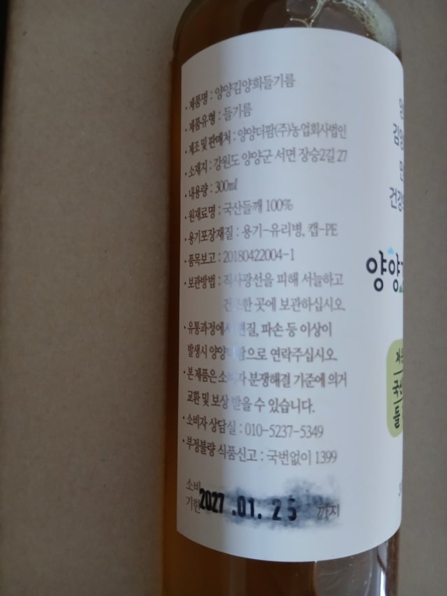 양양김양희 저온압착들기름 300ml * 2병
