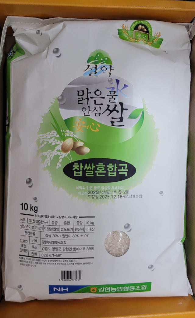 [강현농협](햅쌀) 맑은물 안심쌀(찹쌀혼합곡) 20kg, 10kg